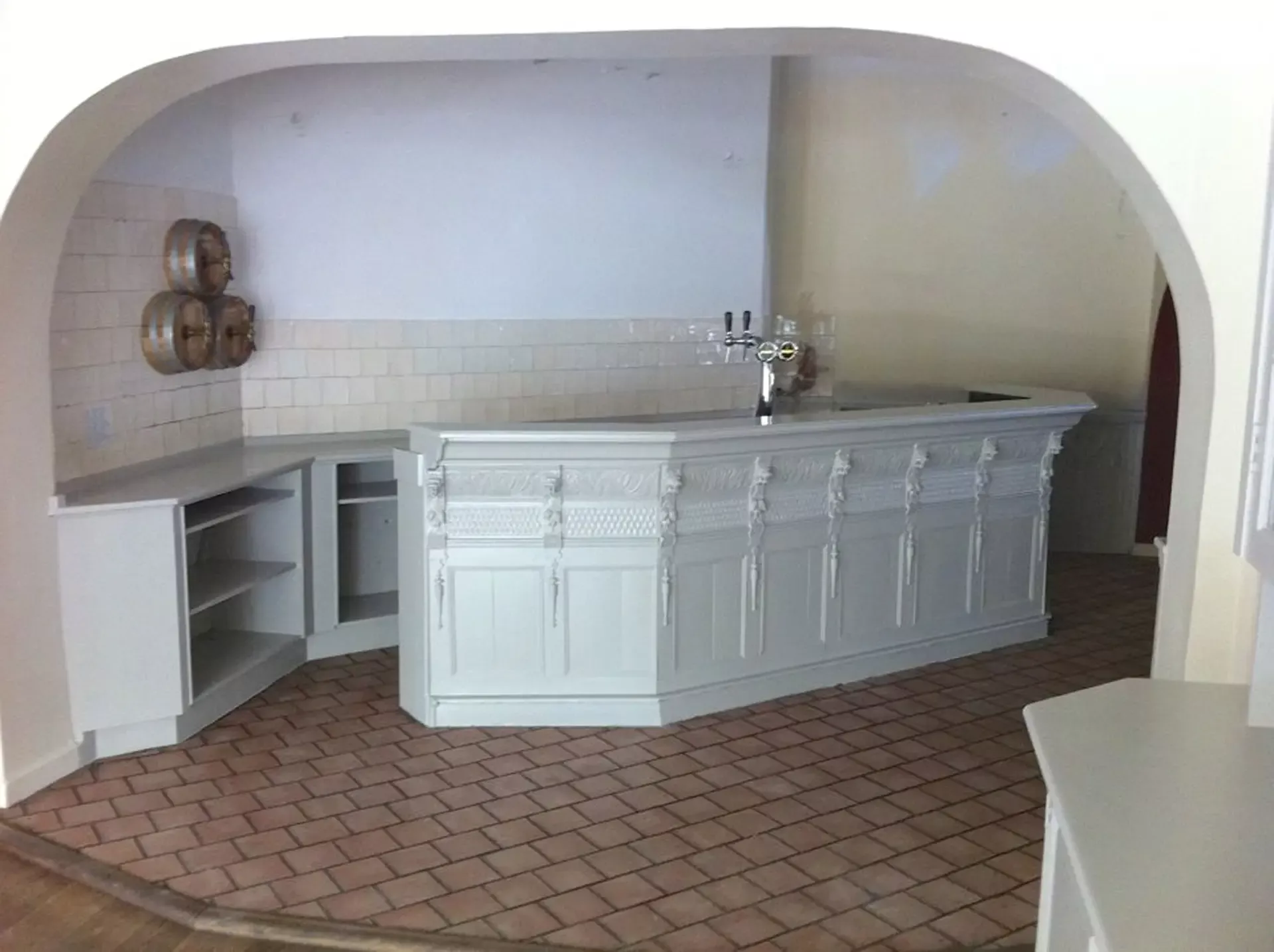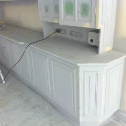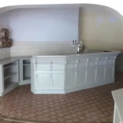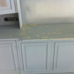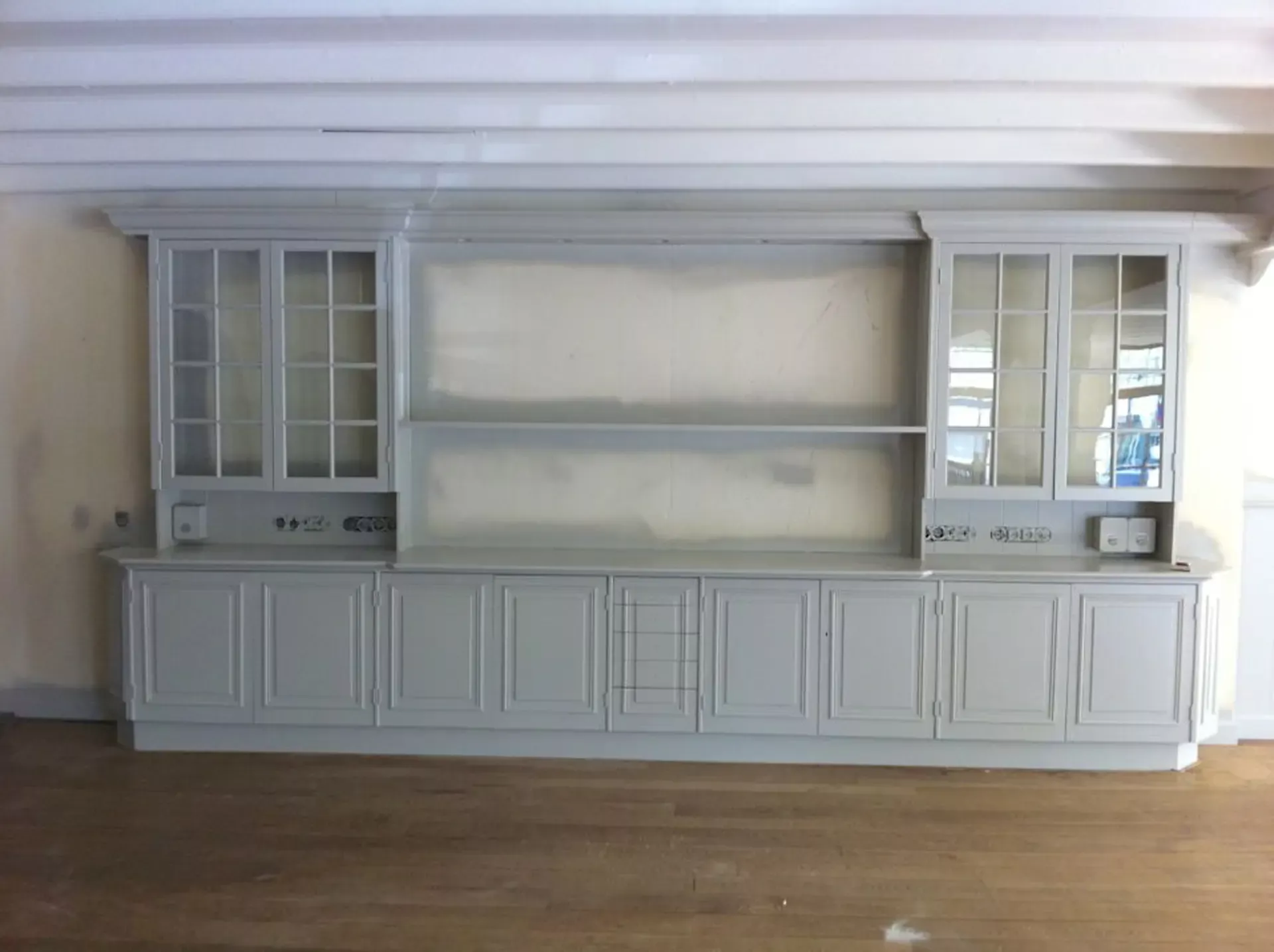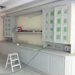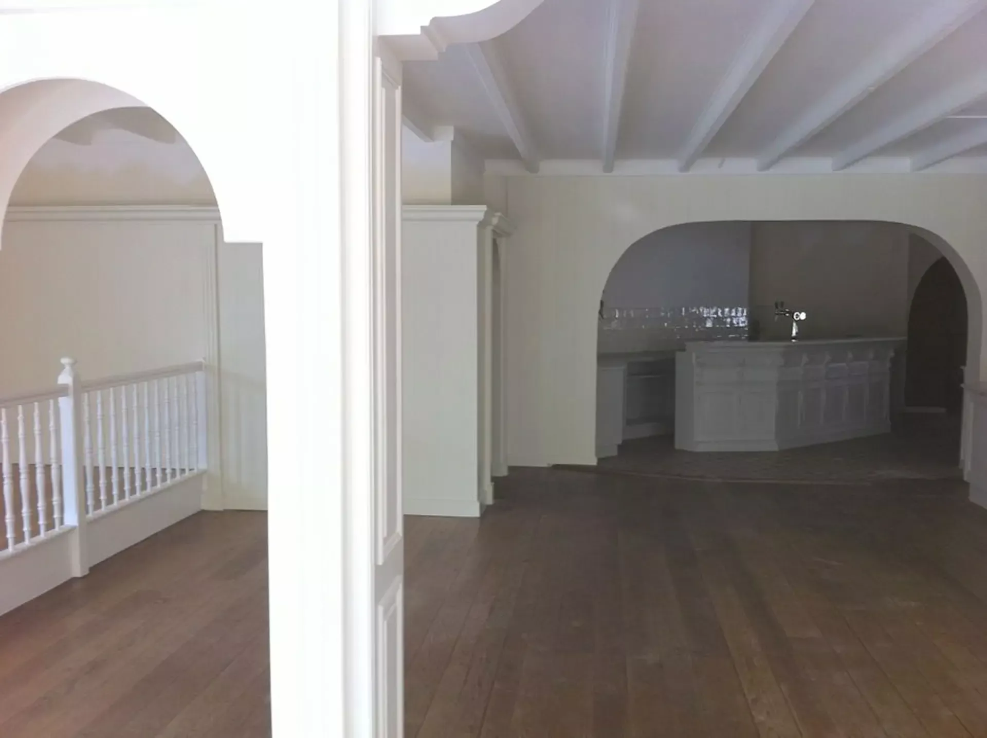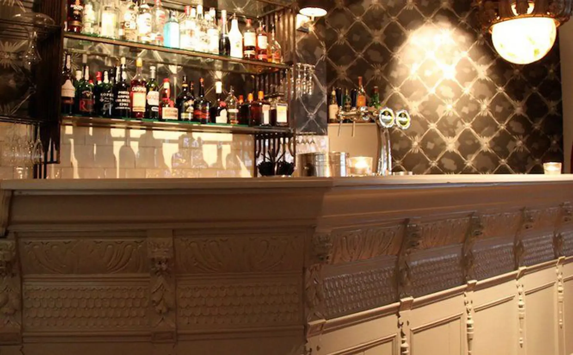 Eerst hebben we alle plafonds en wanden gereinigd om de nicotine-aanslag, afkomstig uit een tijd waarin dit nog mogelijk was, te verwijderen. Vervolgens hebben we de wanden, plafonds en het houtwerk behandeld met een isolerende primer. Het houtwerk is daarna gespoten met zijdeglansverf, de plafonds met matte muurverf, en de wanden zijn opnieuw gestuukt en voorzien van fris nieuw behang.