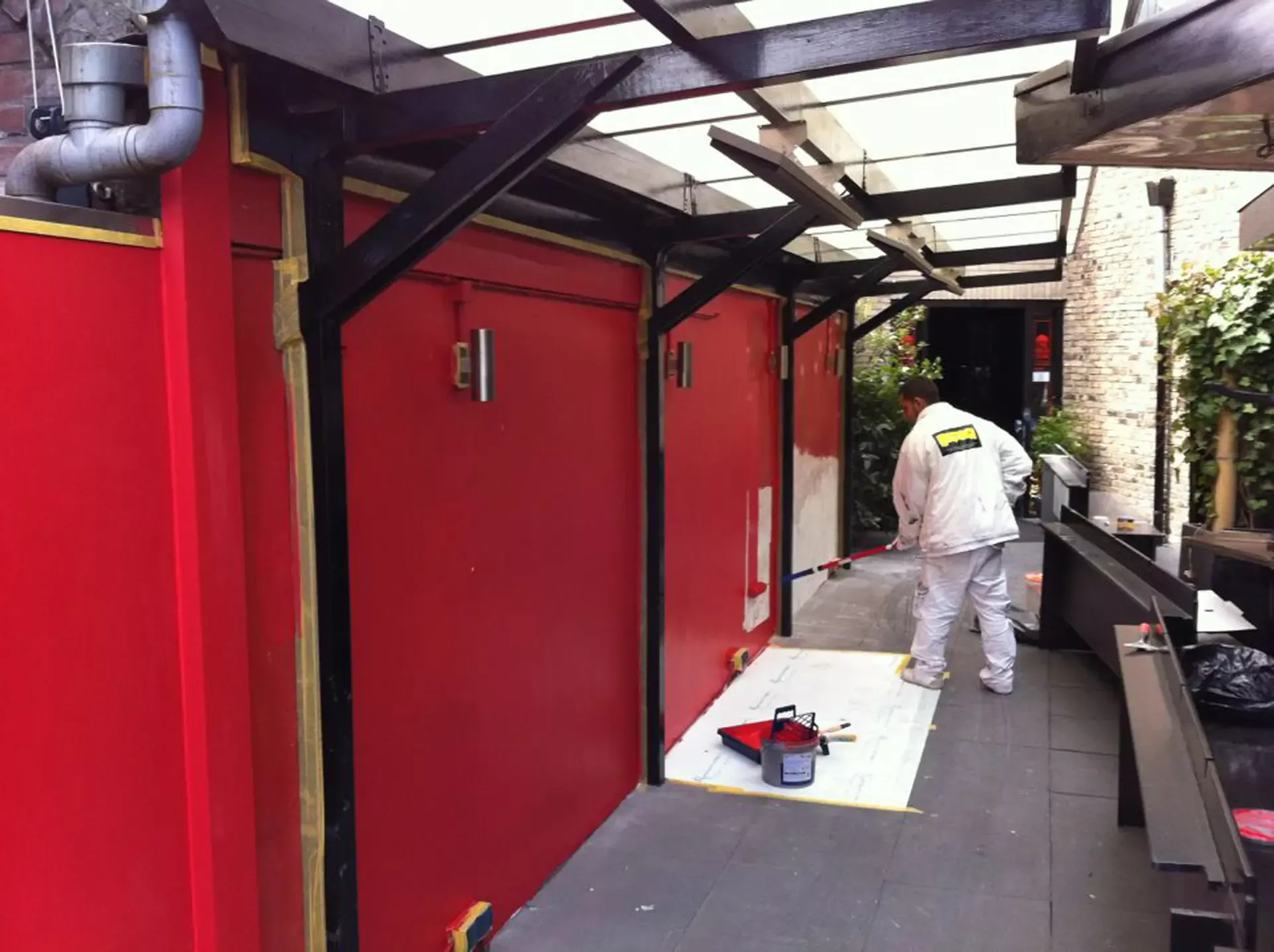Voor deze twee toprestaurants verzorgen wij al jaren het onderhoud. Elke twee maanden houden wij zowel de binnen- als de buitenzijde in uitstekende conditie. Naast het schilderwerk hebben we alle toiletdeuren beplakt met hoogglans formica, wat zorgt voor een onderhoudsvriendelijke afwerking.